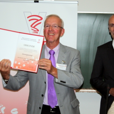 In einer traditionell wienerischen Art einer Doppelconférence führten die Herren Dr. Detlef Bibl (Vizepräsident der ÖGT) und Dr. Harald Pothmann mit einem gewissen Augenzwinkern durch die Geschichte der ÖGT.